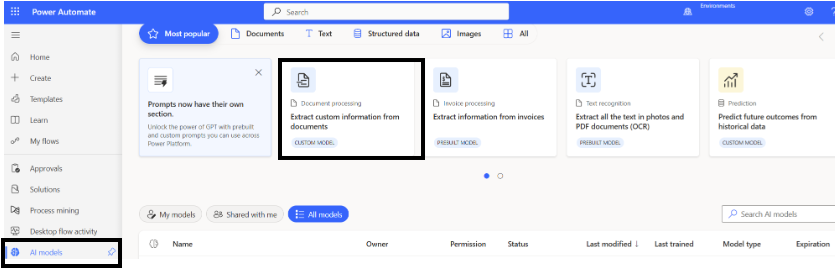 Getting started with AI Builder Document Processing is straightforward. Here’s how you can access it: